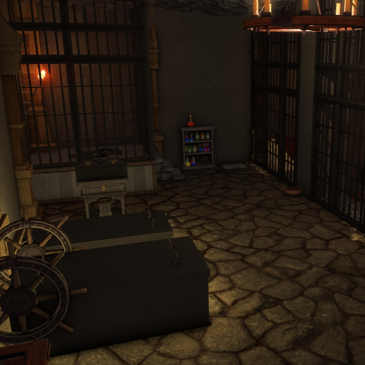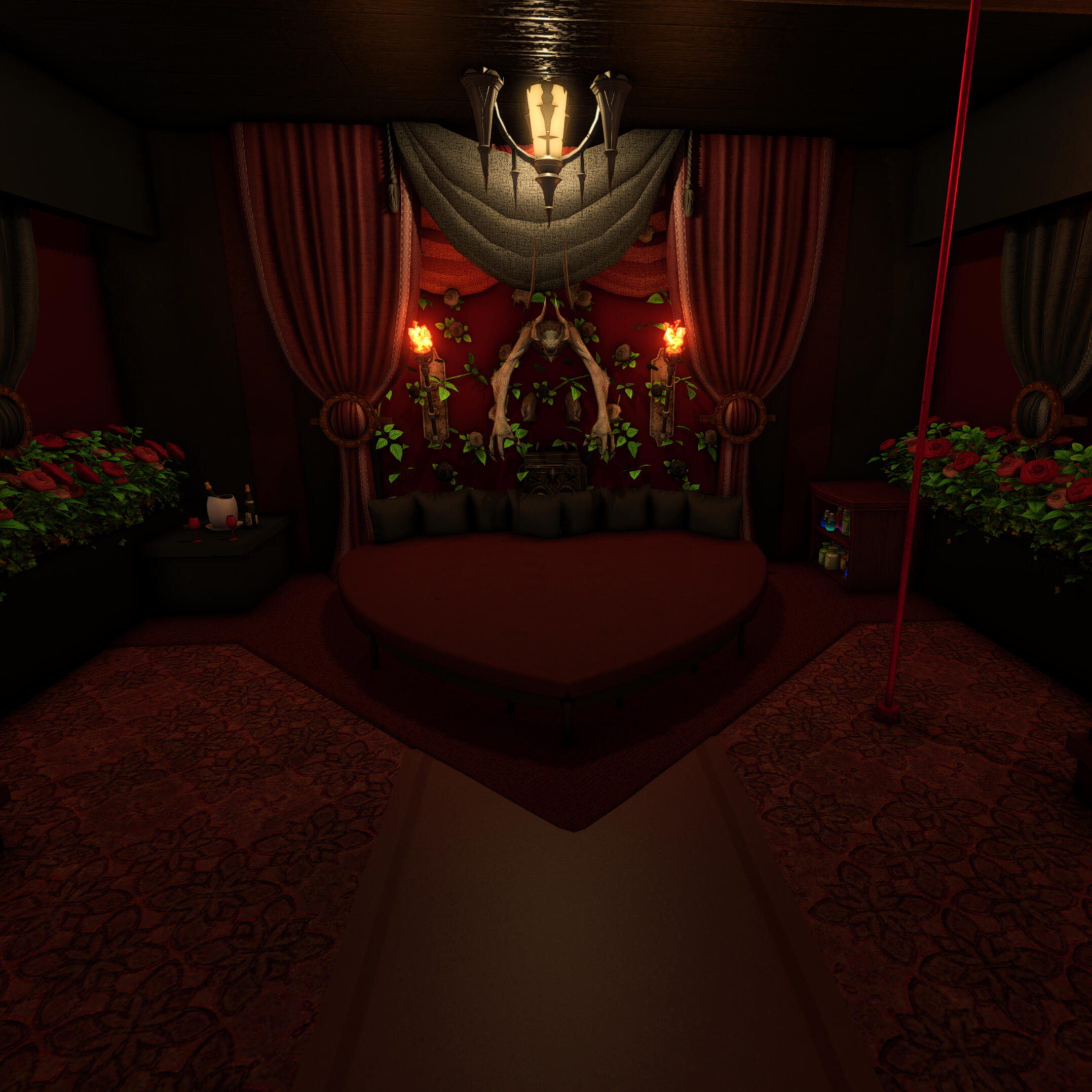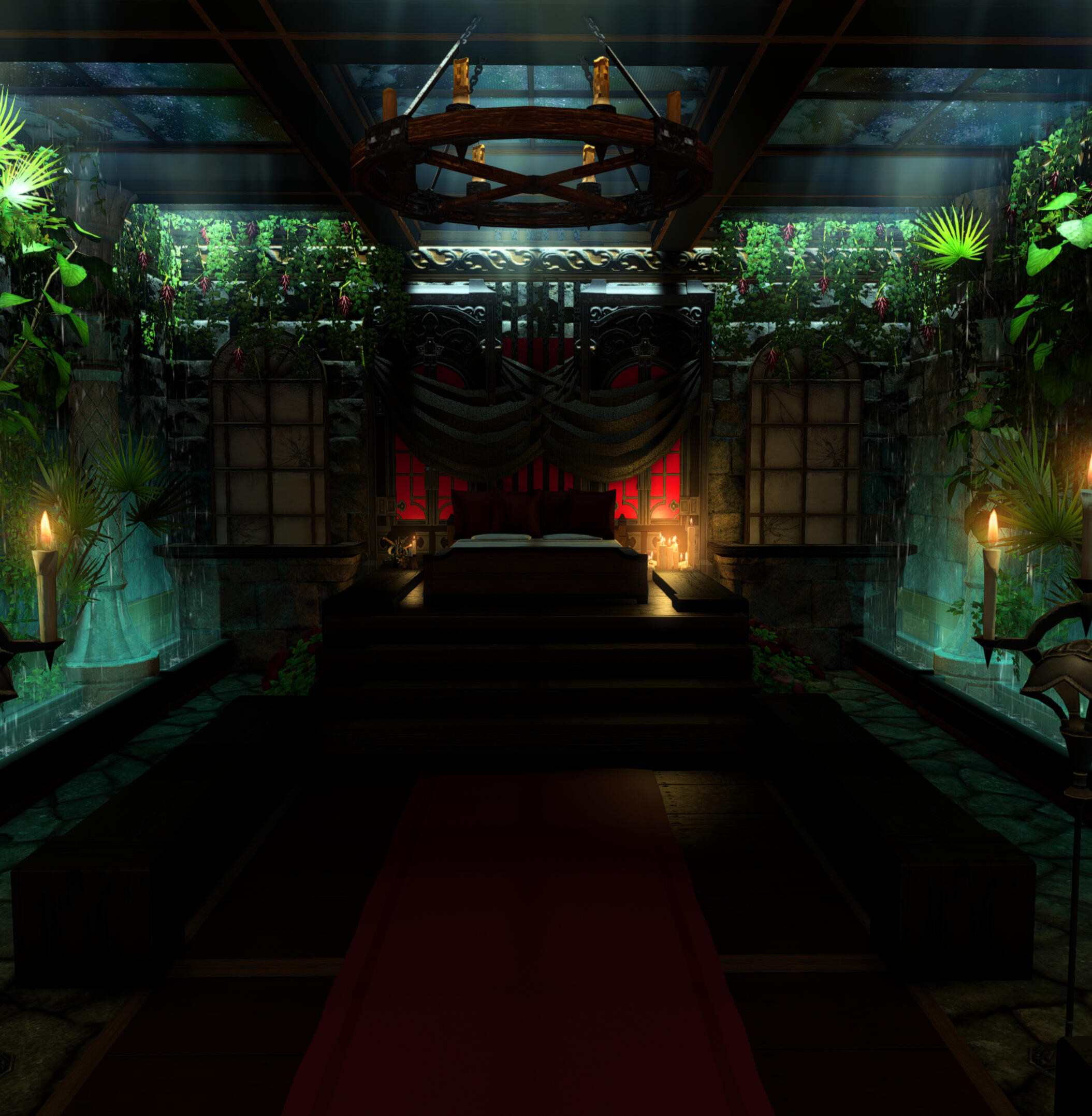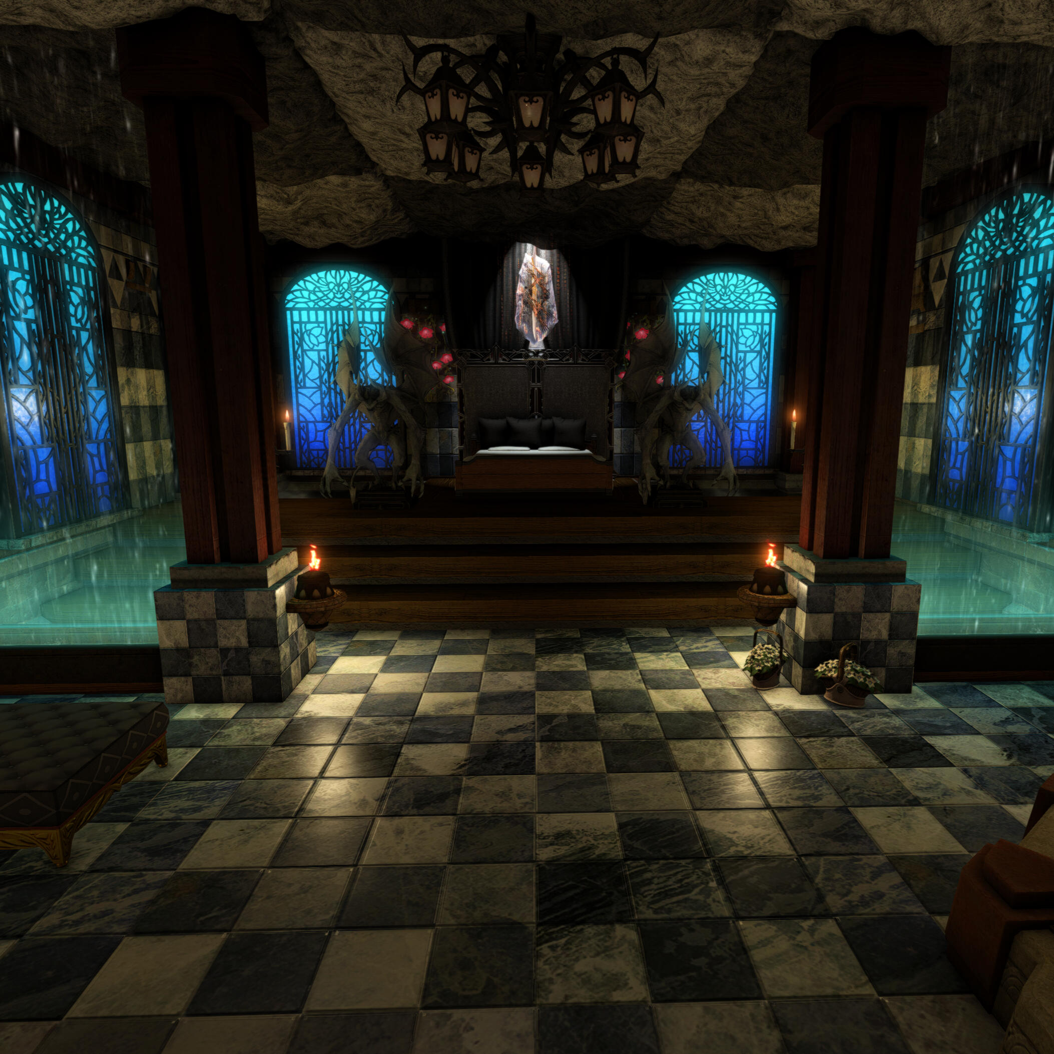 Thank you for visiting Chalet Nocturne, a secluded evening cabin for your Warrior of Light. Change into something comfortable or nothing at all before submerging yourself into our onsens to warm up your blood. Relax further with a massage from a master masseuse. Take a look around and you might find some more pleasurable options...