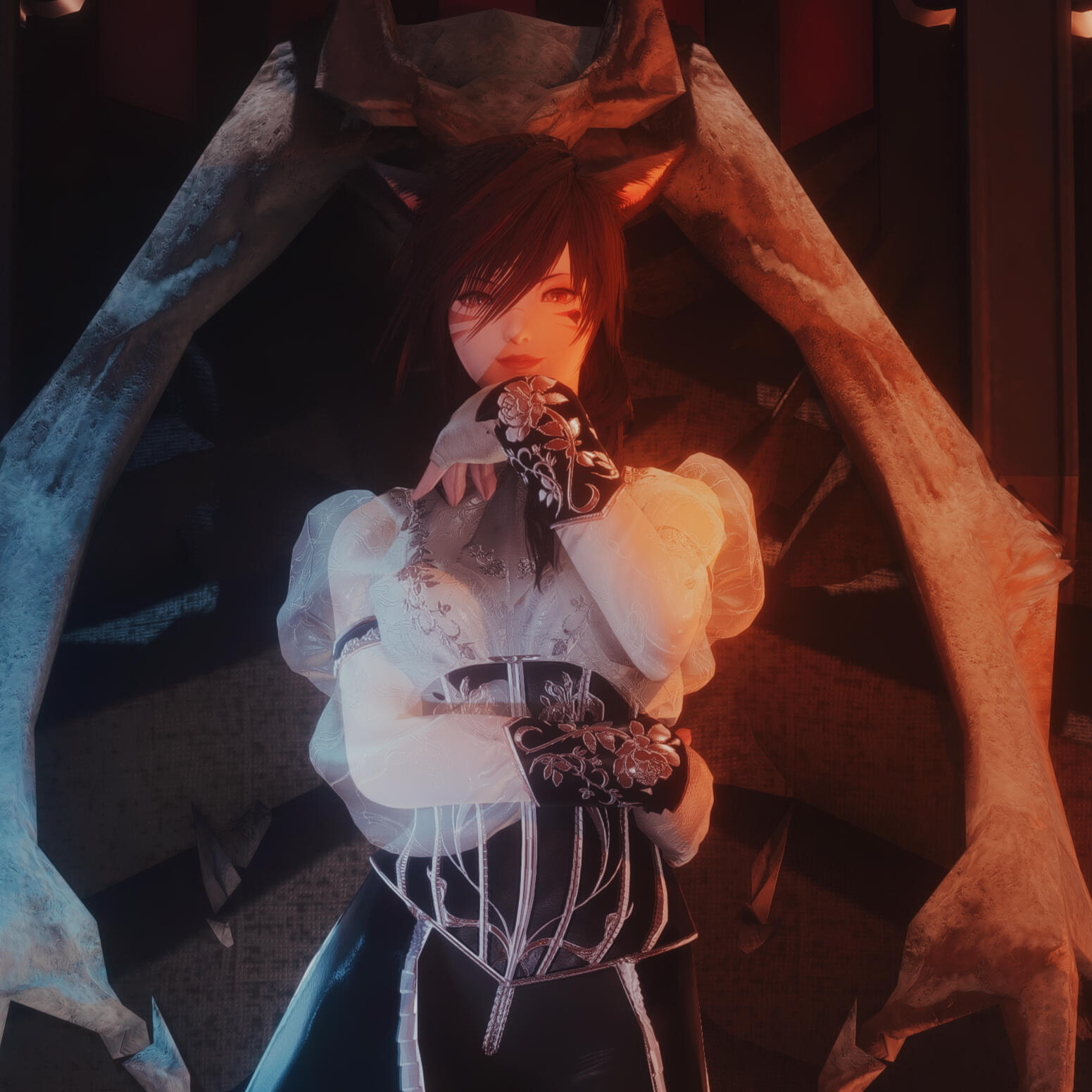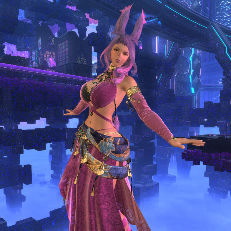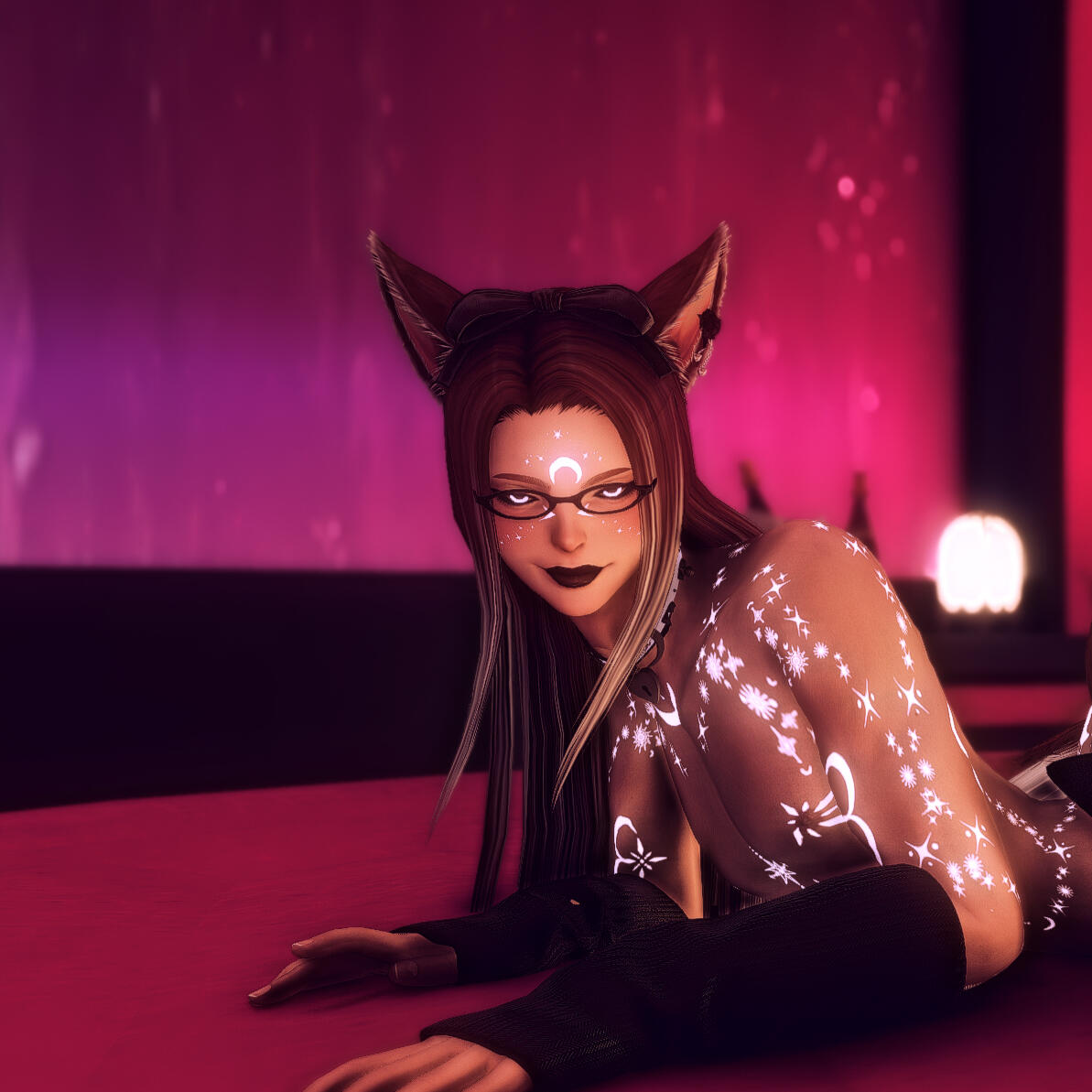 Cursed miqo of Chalet Nocturn, blood boiling with the heat of a sun. She doesn't bite, she burns.
