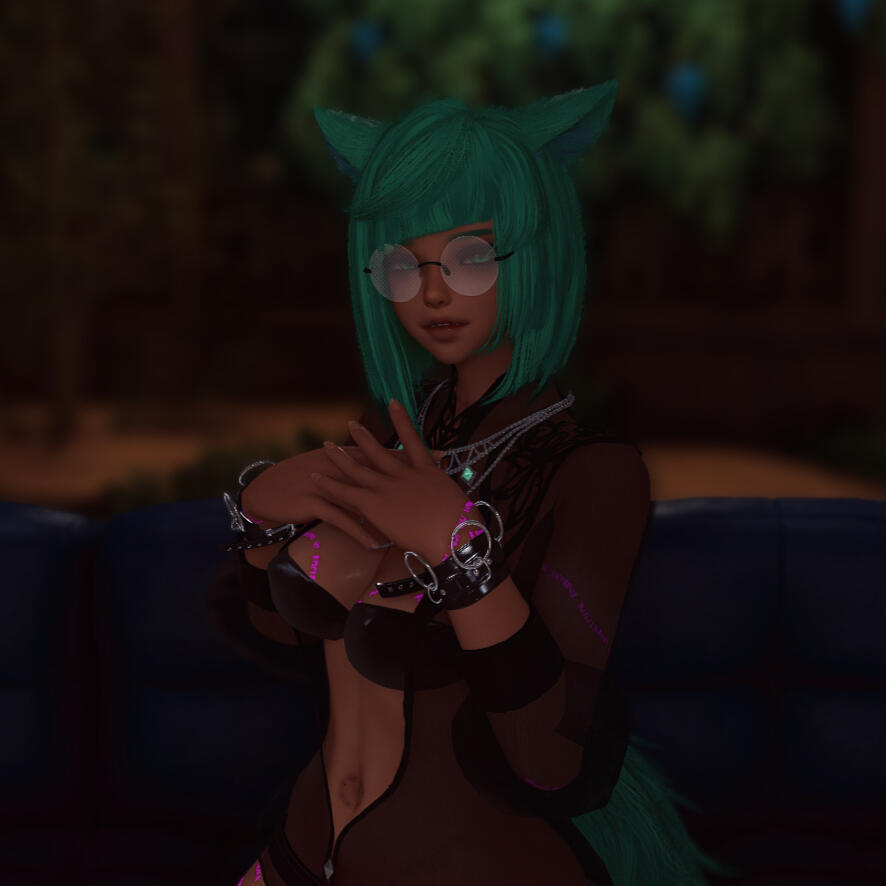 Cursed miqo of Chalet Nocturn, blood boiling with the heat of a sun. She doesn't bite, she burns.